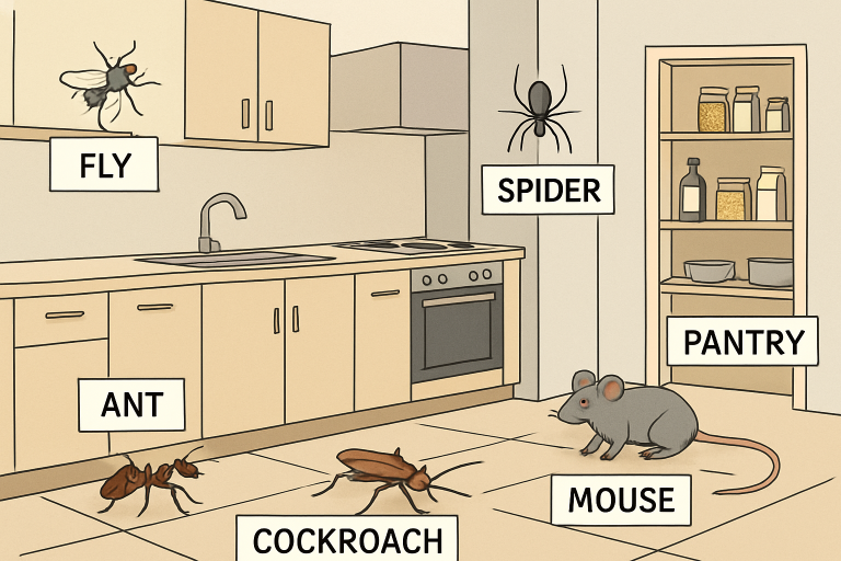 - Flies: Attracted to food scraps and waste, flies quickly contaminate surfaces and transmit pathogens.